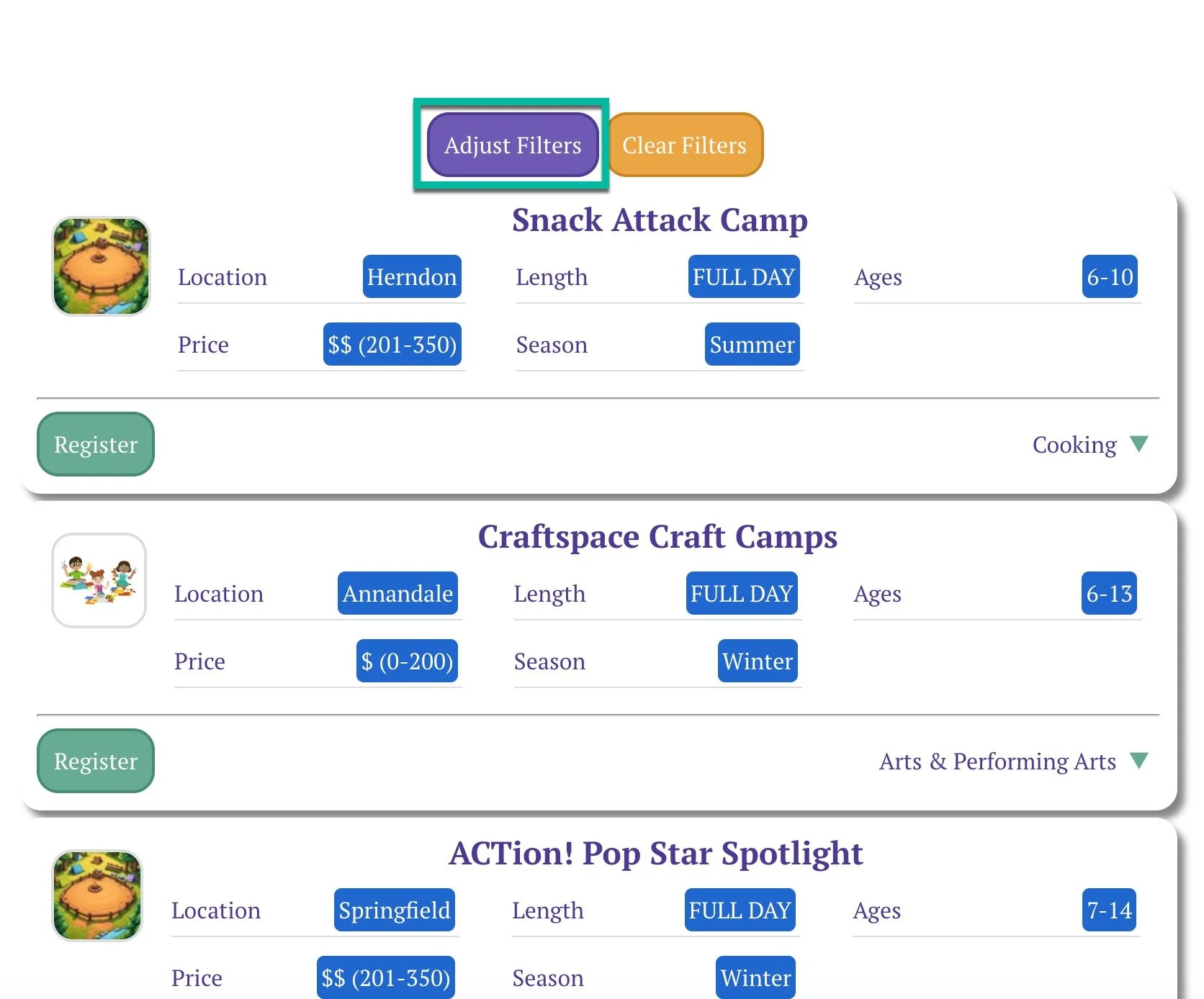 Follow these steps to find and register for the perfect camp using the CampSorted app.